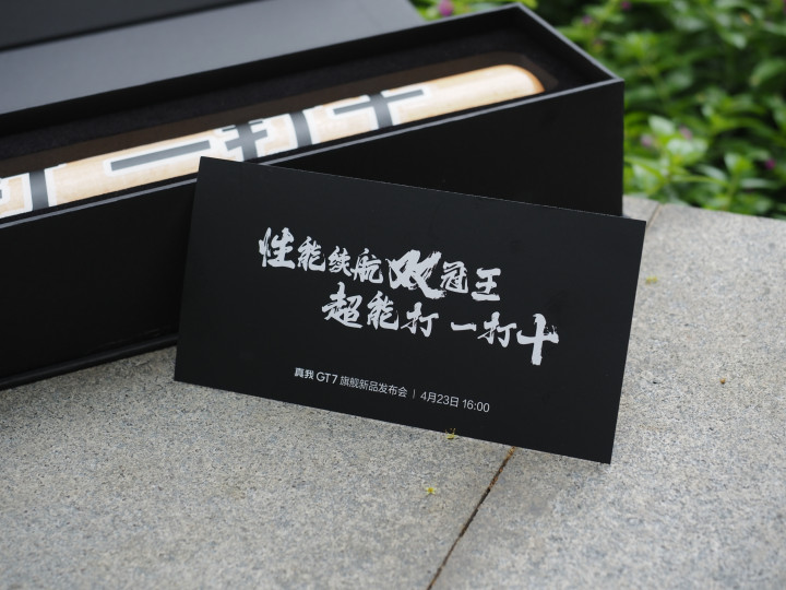 看官微这个宣传语,能感觉到真我 GT7 是“性能续航”两手抓呀。非常巧的是,今天小雷收到了真我 GT 7 发布会的邀请函,居然是一根货真价实的棒球棍!至于为啥选择用棒球棍,真我已经写在上面了——超能打 一打十。